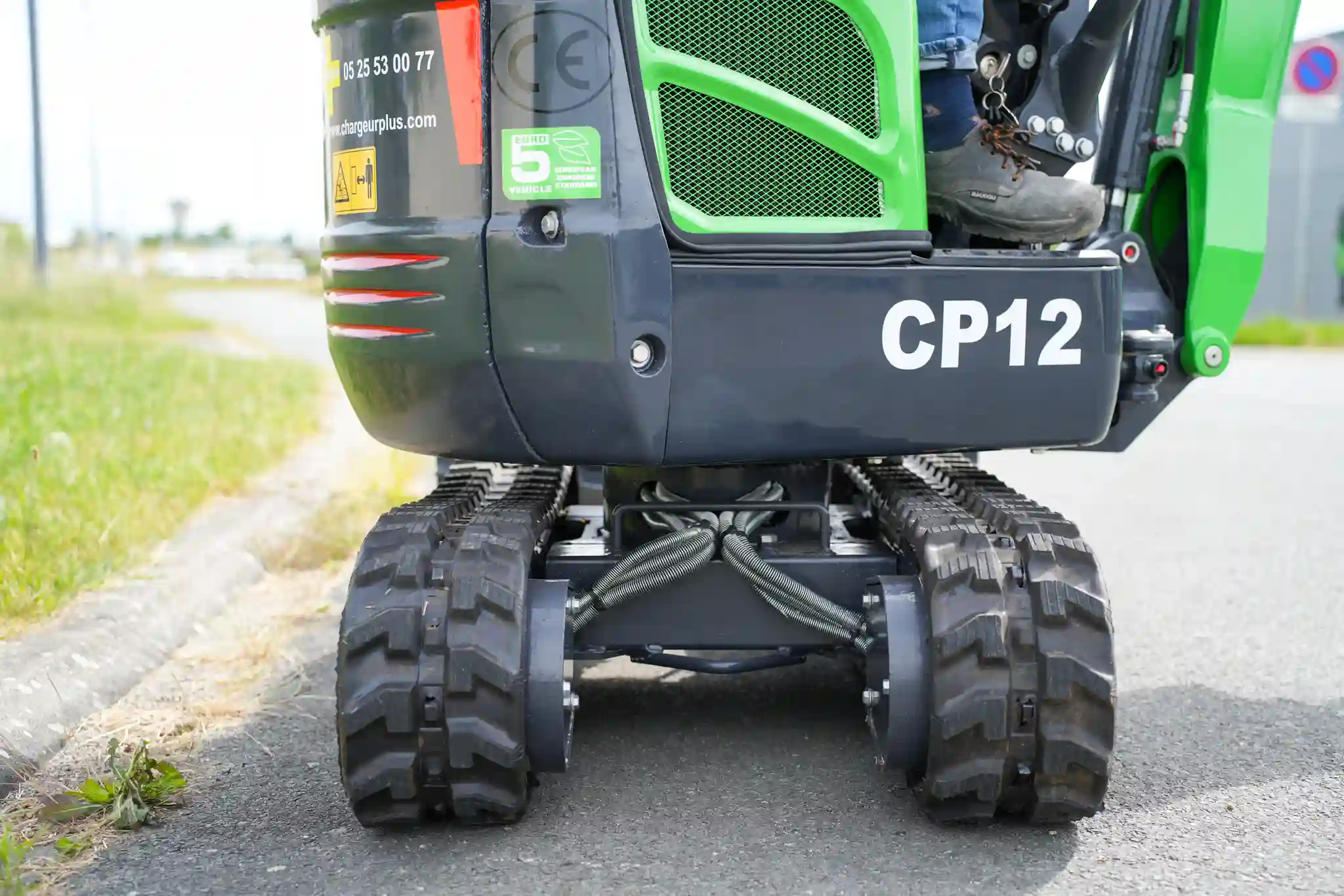 Autre point notable : la CP12 bénéficie d’un cul court (zéro déport), facilitant le travail dans des environnements contraints. Cette caractéristique n’est pas présente sur la PX12 qui aura, un cul plus long, dépassant des chenilles quand elle tourne.
