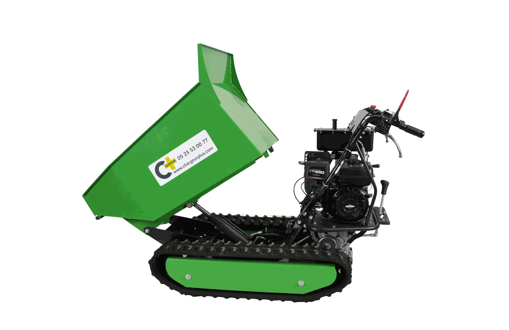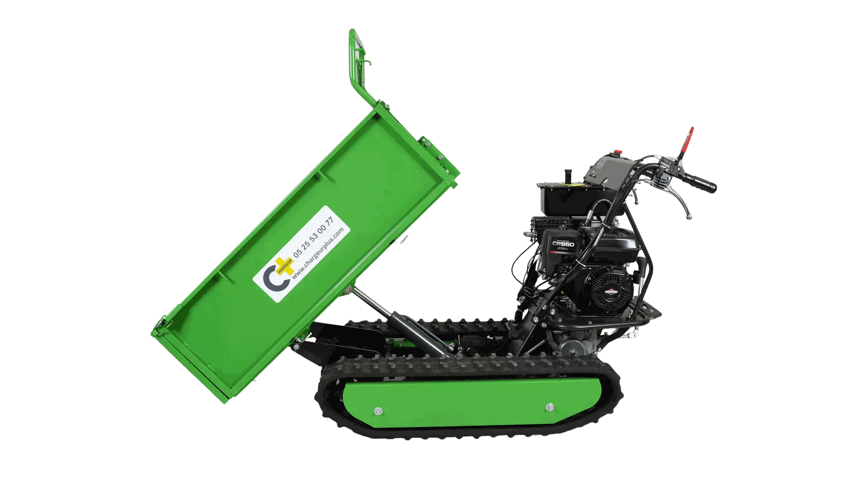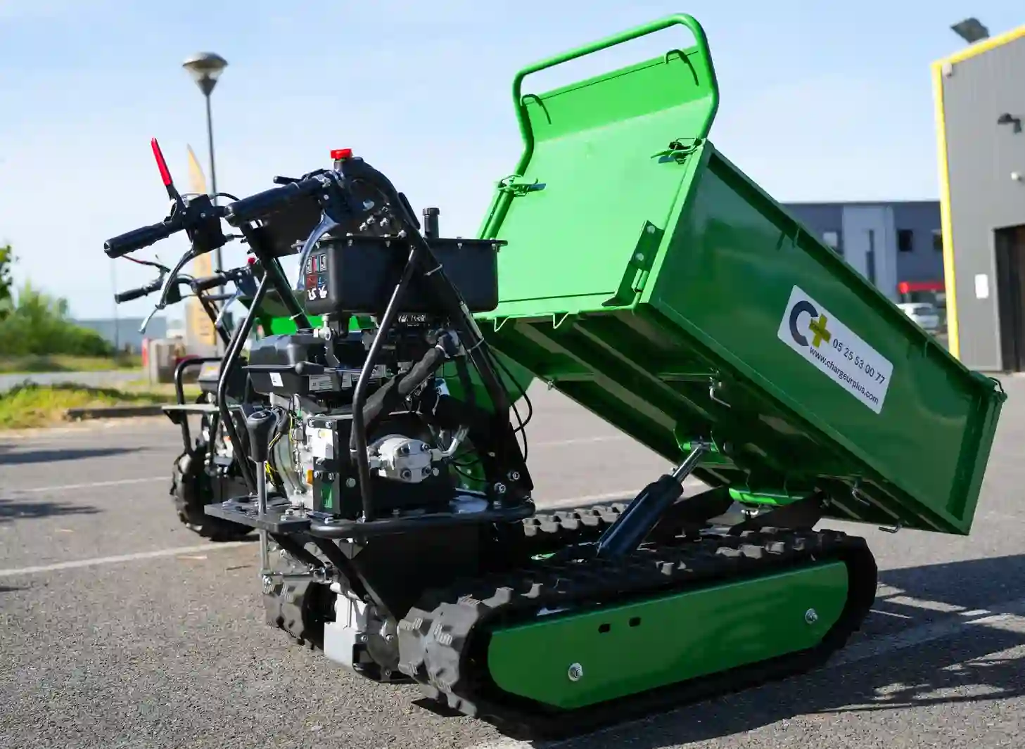 Un dumper équipé de chenilles offre une plus grande stabilité grace à une surface de contact au sol plus importante, les chenilles en caoutchouc sont anti-dérapantes et permette une bonne adhérence au sol. Elles laissent moins de trace et viennent préserver vos sols.