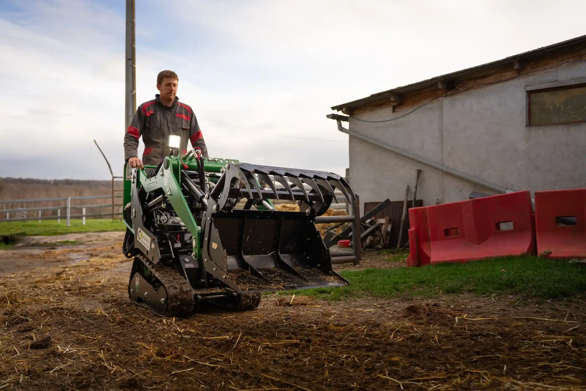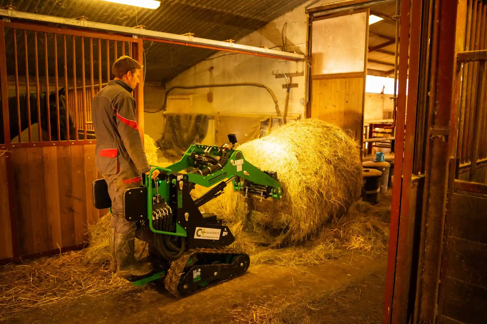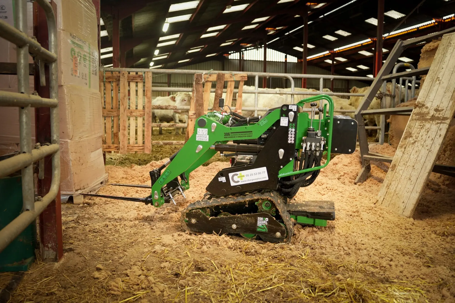 La MC306 se distingue par sa capacité de levage exceptionnelle de 470 kg à 2 mètres, rarement atteinte pour ce gabarit et ce niveau de prix. Sa structure renforcée et ses chenilles renforcées par 4 galets assurent une grande stabilité, particulièrement utile lors des travaux quotidiens en centre équestre, comme le curage des boxes ou la manutention de charges lourdes.