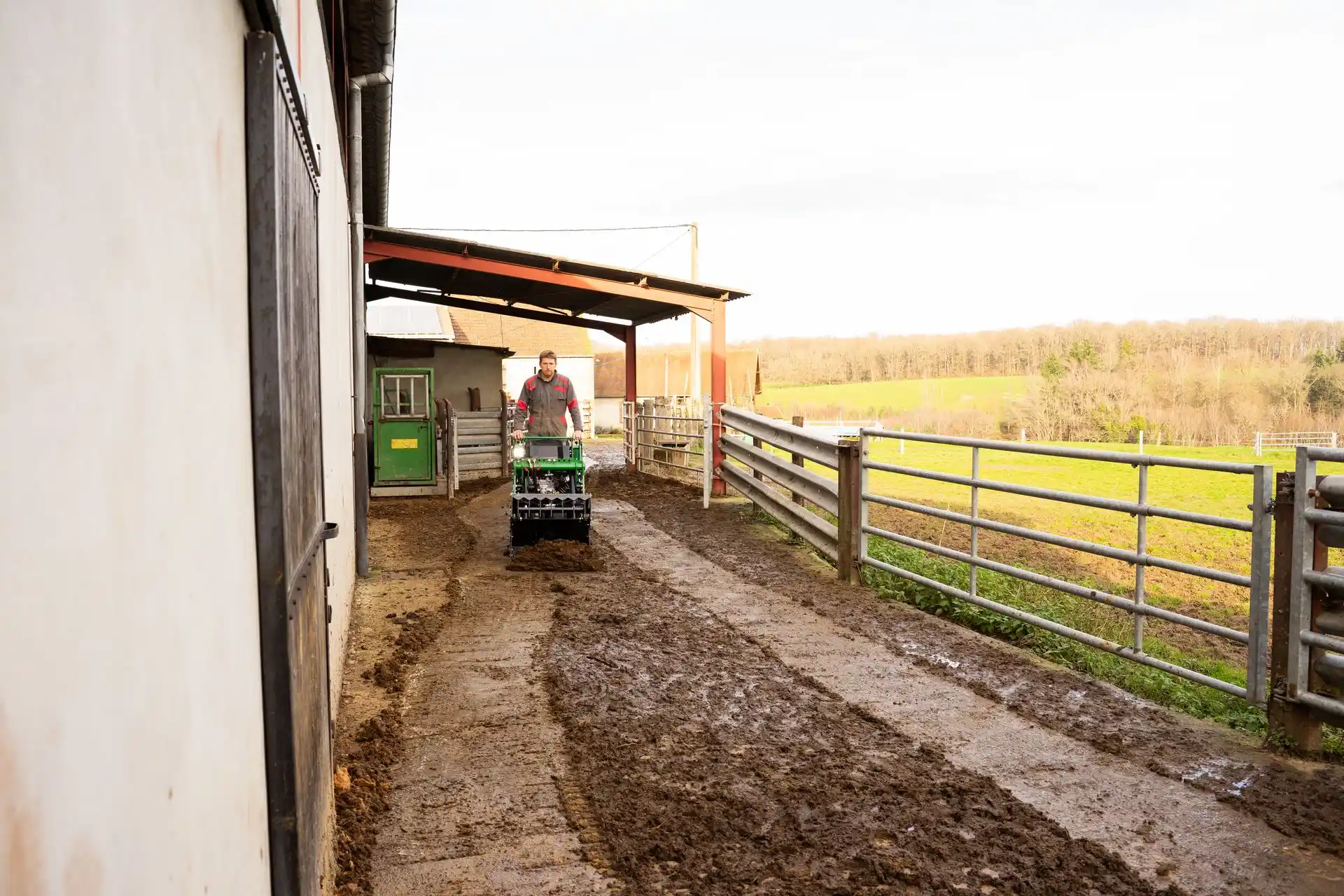Une mini-chargeuse sur chenilles est idéale pour les terrains difficiles. Grâce à une surface de contact au sol plus importante, elle offre une meilleure adhérence, une grande stabilité et limite le tassement du terrain, un point essentiel dans les allées d’écurie ou les zones humides. La répartition du poids au sol offerte par les chenilles améliore également la capacité de levage en hauteur, ce qui en fait une solution performante pour travailler efficacement sur sols meubles ou en pente, fréquemment rencontrés en milieu équestre.